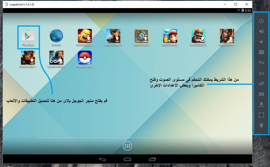 ويمكنكم تحميله من المقالة التالية : تحميل برنامج LeapDroid
